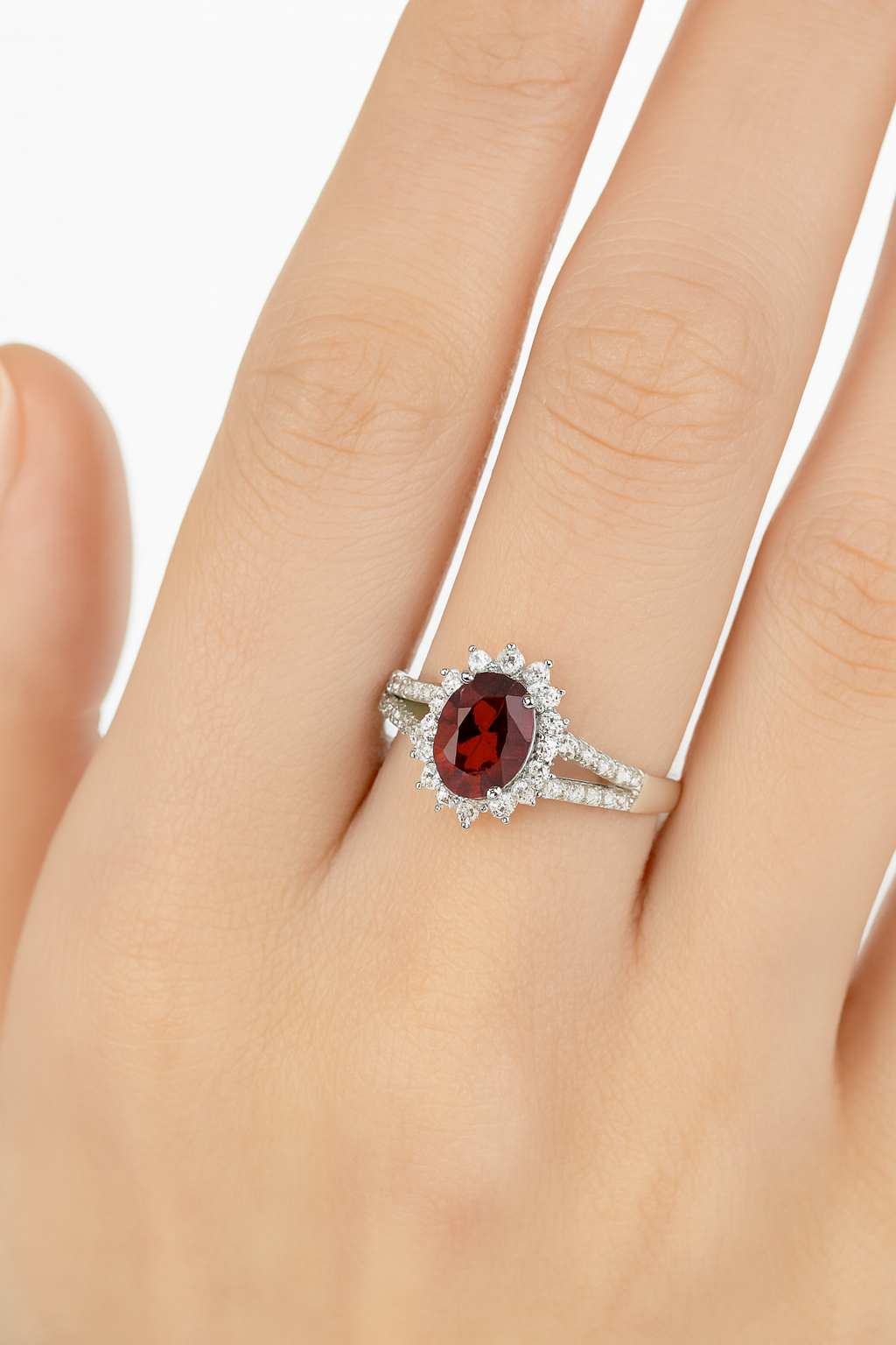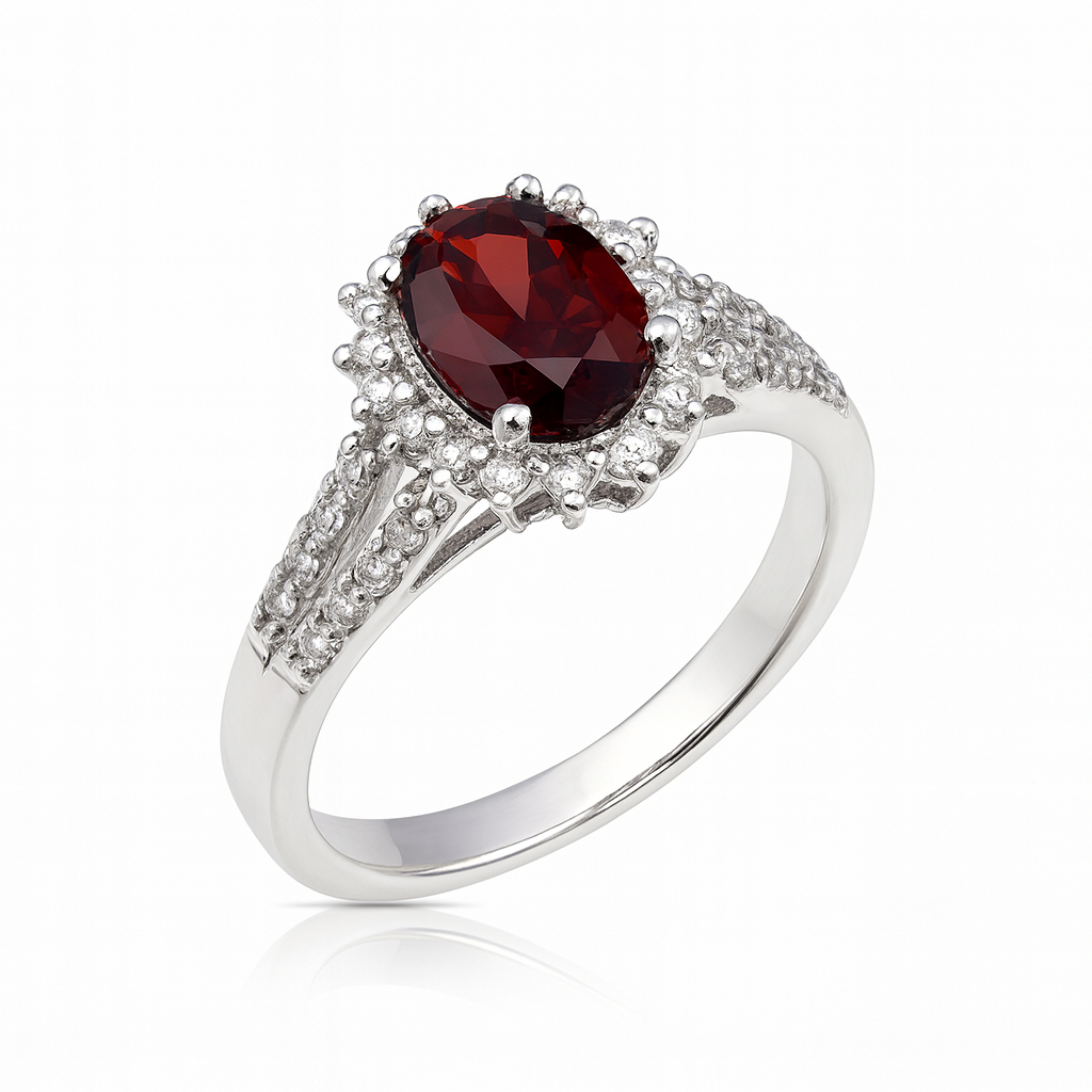 925 Sterling Silver Natural Garnet Zirconia Solitaire Ring