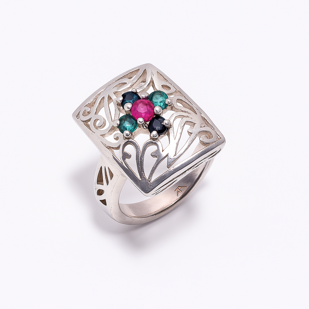 Art Deco Vintage Style Handmade Multi Stone Silver Ring