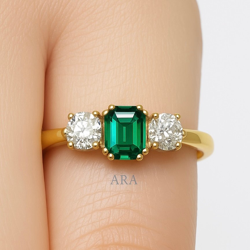 Be the first to review “Emerald-Cut Emerald and Natural Two Diamond Wedding Gold Ring” Cancel reply